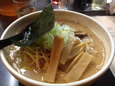 白いスープのラーメンでびっくり。