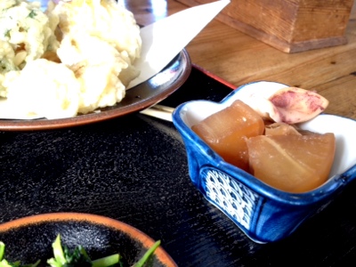 天ぷらはかぼちゃやマイタケなど、野菜の天ぷらです。