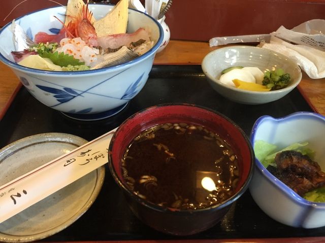 カウンター席に座り、店の外で見た看板で最初に目に付いた海鮮丼830円を頼んでみました。