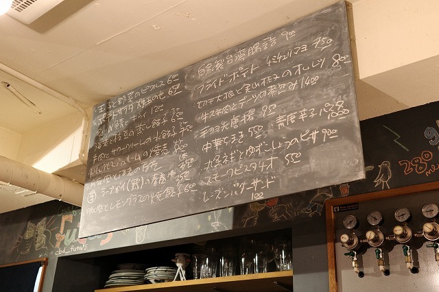 料理のメニューは店内カウンター上の黒板に書かれています。