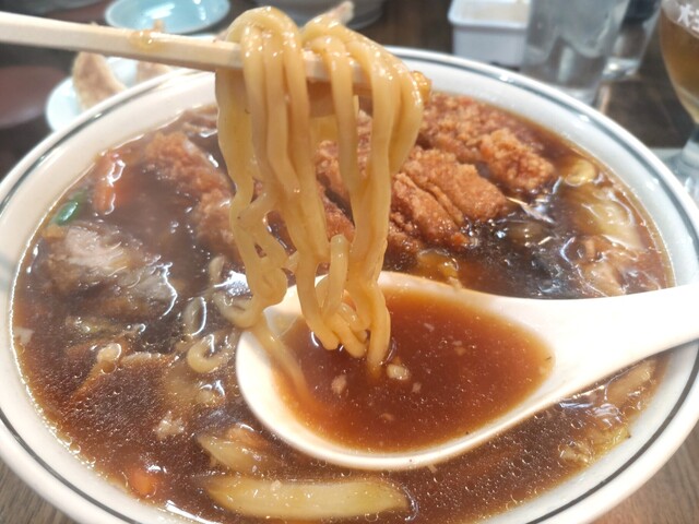 スープは餡と混ざるが醤油。レトロな鶏ガラ東京ラーメン的な趣。