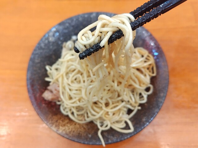 梅昆布水に浸かっていて、ほぐしてまずはそのままちょい啜ってみるとちゃんと味が入っている。梅昆布水の方にしっかりと味入りでそのままあっさりラーメンでいけるほど。