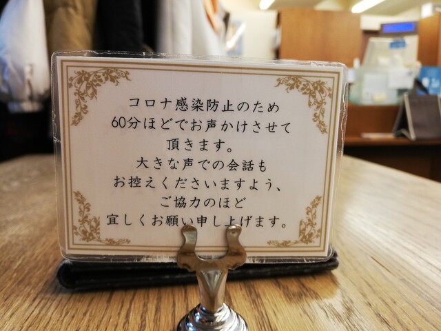人気店で、たくさんお客さんが来るので「コロナ感染防止のため60分ほどでお声かけさせて頂きます。大きな声での会話もお控えくださいますようご協力のほど宜しくお願い申し上げます。」とテーブルの上に但し書きが置いてありました。