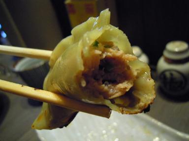 普通の餃子となんか味が違います癖になりそうなお味です皮もパリッ!プリッ!してていけます!ヾ(@°▽°@)ノ
