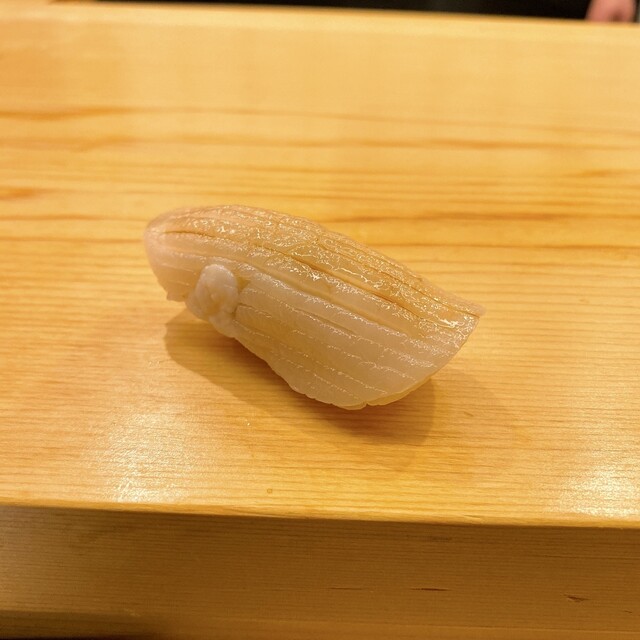 以前は突っ先は一番最初に出されていましたが、最近は白身から出す方針に変えられており、赤酢とネタとの風味の相乗効果の特徴がますます出ております。