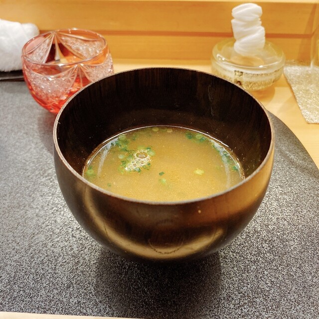 名物マグロの手巻きの突先から始まり、なまこの小皿、…と続き、最後は本日使ったお魚のあら汁。どちらも美味しい!料理の出てくるスピードも絶妙ですね。