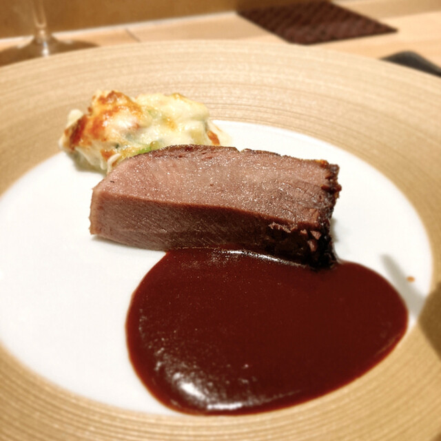 ロブスターのリゾットにスープをかけてひたひたにして食べる一品が美味しかったのと、タンのシチュー風ローストが美味しかったですね。