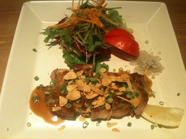 赤地鶏のガーリックステーキ 1,400円 ←パリパリの皮に肉厚なお肉は柔らかでした。