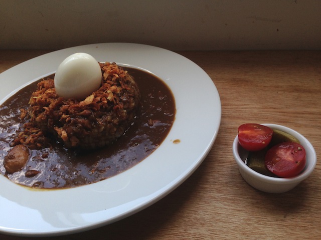 私は、ソングバードカレー(900円)。 ←ちょっと一部崩れちゃいましたけど、フライドオニオンがたっぷりのってて鳥の巣みたいです♪