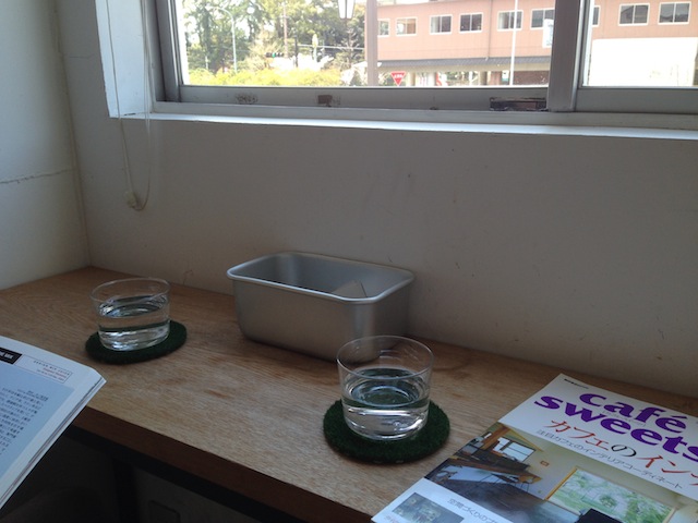 置いてある雑誌とかアルミのカトラリーケースとか、芝生みたいなコースターとか大きなグラスとか…ダーもこの感じを気に入ってました。