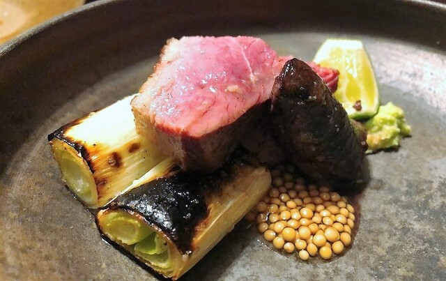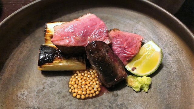 窒息鴨ロースト:京都・亀岡産七谷鴨のモモとハツのロースト 粒マスタードと山葵メインディッシュですか まだまだ焼き鳥始まってないし・・・焼鳥屋さんじゃない鶏割烹でした