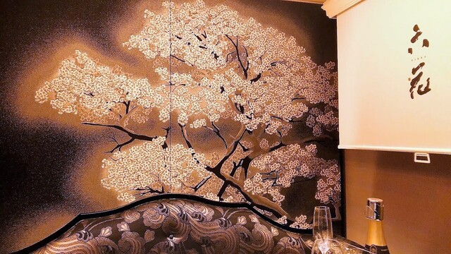 六本木のヒルズに向かう途中の一本入ったところにある 有名なパン屋さんの二階なのだが 横のエントランスは重厚な扉である。そして階段を上ると六花・・ 物知り隊員と話していて 六花とは雪の結晶だったよねってことは知っていた 木製のドアを開ける この雰囲気で一気に期待も膨らみます