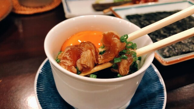胸肉漬け 胸肉の漬けと卵黄と海苔
