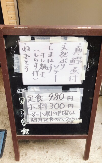 小刺しは刺身の1/2で300なので これと定食のオーダーに 素晴らしいと褒める^ ^