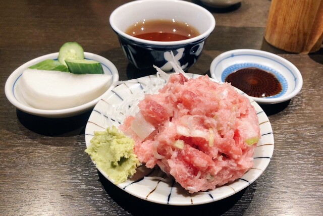 いつもの ねぎとろは今日も旨い また間に漬け物と一緒にちびちびやるのに最適