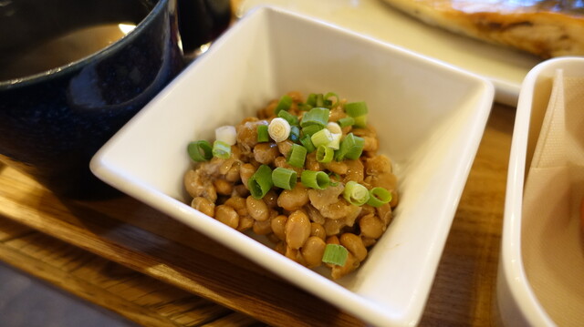 サバの文化干し定食(1,450円)に納豆(100円)と生卵を(150円)追加。