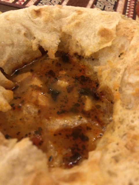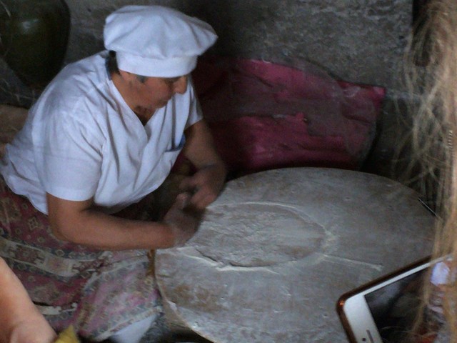 場所を変えて、今日の夕飯は、バクーでも食べたピティというラム、ひよこ豆、じゃがいも、人参などのシチュー。上を覆っているのは薄いラヴァッシュというパン。シチューに落として食べます。