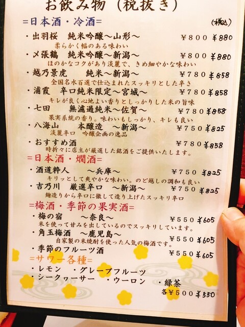 酒は、浦霞 辛口純米 -宮城-、 越乃景虎 純米 -新潟-、 七田 無濾過純米 -佐賀-。
