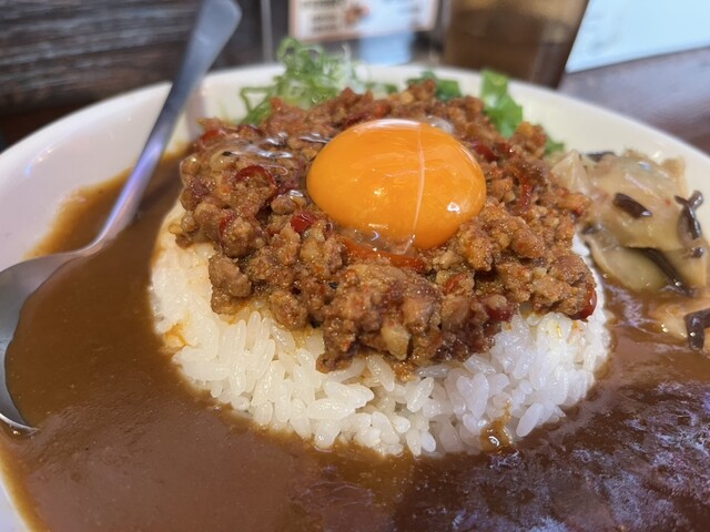 水道橋No.1牛肉ときのこの焦がし味噌カリー+サバとかつお出汁のココナッツカリー2種盛り!