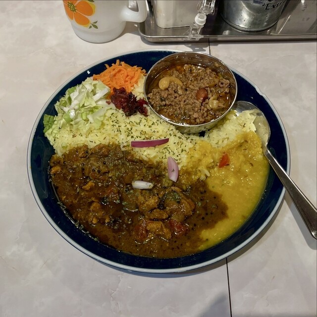 飯田橋No.1限定大人の和風バターチキンカリ〜+定番粗挽きキーマカリ〜の2種カリ〜!