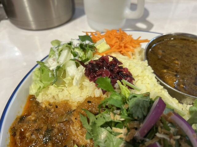 飯田橋No.1ハーブとナンプラー香るアジアンキーマカリ〜+粗挽きキーマカリ〜の2種カリ〜!
