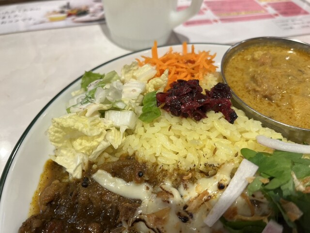 飯田橋No.1粗挽きキーマカリ〜+ゴボウとこんにゃくの和出汁チキンカリ~の2種盛り!