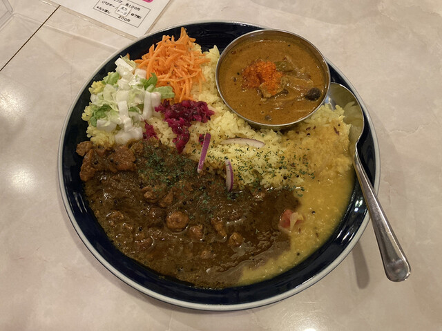 飯田橋No.1カボチャのポタージュ風ベジカリ〜+粗挽きキーマカリ〜の2種盛り!
