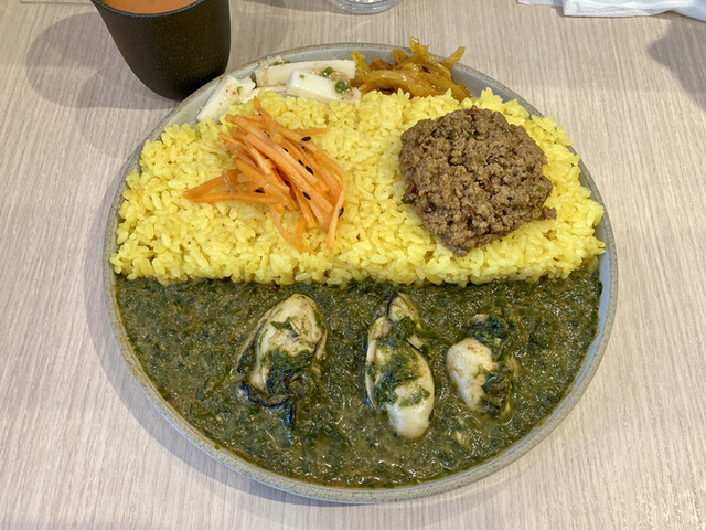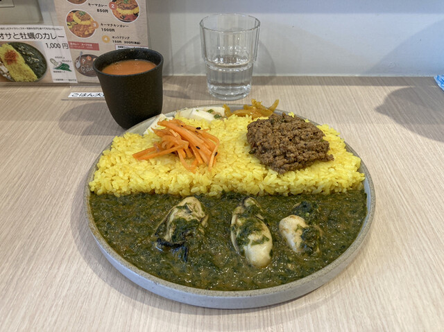 秋葉原No.1生アオサと牡蠣のカレー+キーマ!