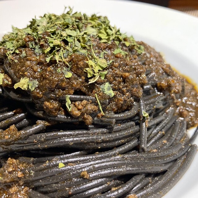 両国No.1イカスミ肉キーマのシナモンカレーパスタ!