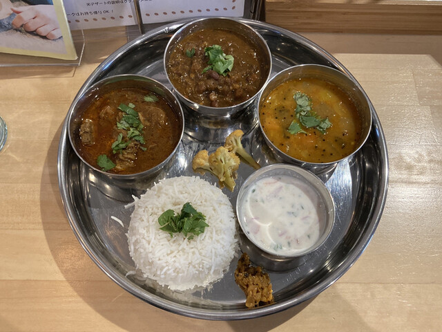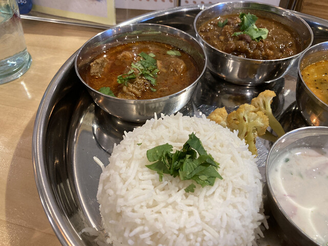 亀戸No.1北インド骨付きチキン+ベンガル風イカカレー+南インド風カシューナッツ+サンバルのランチカレーセット!