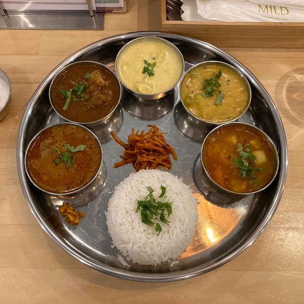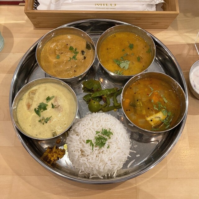 コリマッパス+野菜のココナッツマサラ+サンバル+スーキー・ウラッドの4種のカレー1,430円!