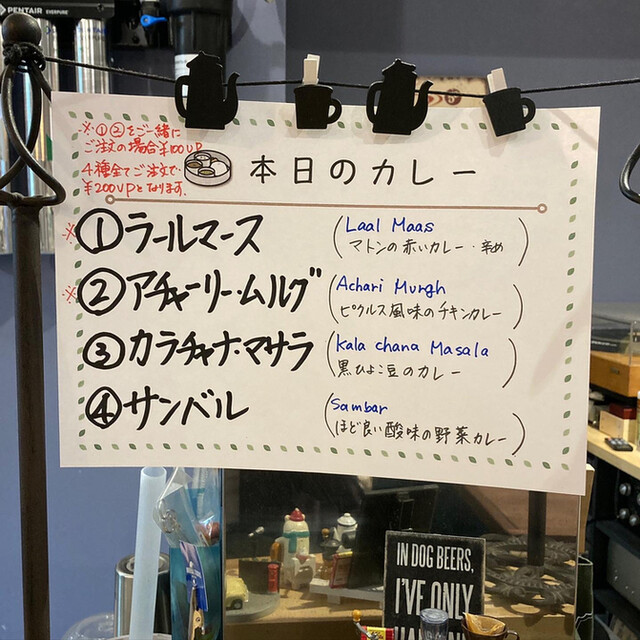 亀戸No.1かきのミーンモイリー+レンズ豆のカレー+サンバル+バターチキンのカレー3種+1!