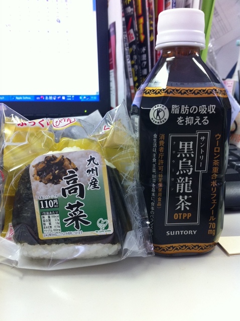 黒烏龍茶と高菜のおにぎり