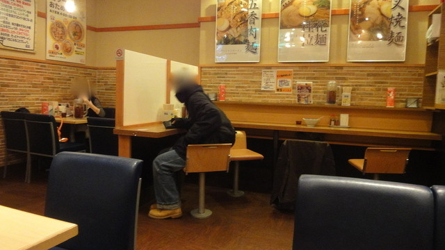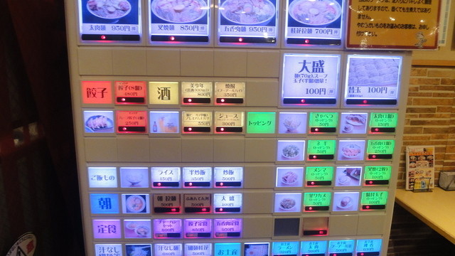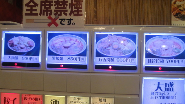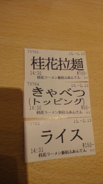 入口横の自動券売機で桂花ラーメン、キャベツそしてライスを購入、入口付近のテーブル席に着席です。