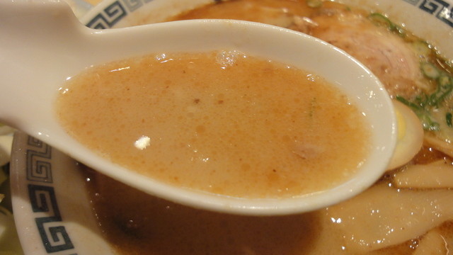 それでは早速スープをジュルルッといただきます!フーーッ!豚骨スープが美味しい!!!(o^^o)