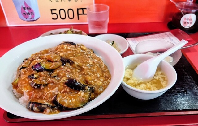 記憶の中では茄子の肉みそ炒め麻婆みたいな印象だったけど、目の前にあるのはまさに麻婆茄子丼。