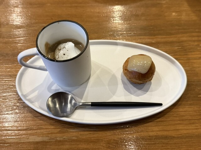 この日は夜に予約をして伺いました。店の照明は抑えめで、カウンターを中心にわずかなテーブル席があり、静かな緊張感としっとり感が共存する空間です。訪問時は、アラカルトを中心に、繊細な皿の数々をいただきました。