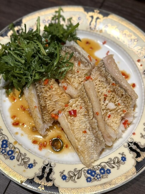 その後も、甘鯛を香ばしく揚げた皿には雲南唐辛子醤油が香りを添え、木姜の柑橘のような香りがアクセントに。ふわふわのオムレツには一番摘みの新茶が練り込まれ、口に含めば春の苦味と茶葉の香りが優しく広がる。そして、自家製の干し肉と生筍、キャベツを炒めた“田舎炒め”は、この店の原点を感じるような、質朴でいて力強い皿だった。