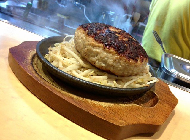 鉄板焼のカウンターから、繰り出される料理&ハンバーグに満点!