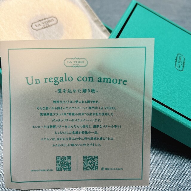 前回おいしくてお気に入りだったラボーロさんのバウム、なんと今回はお土産でいただきました!