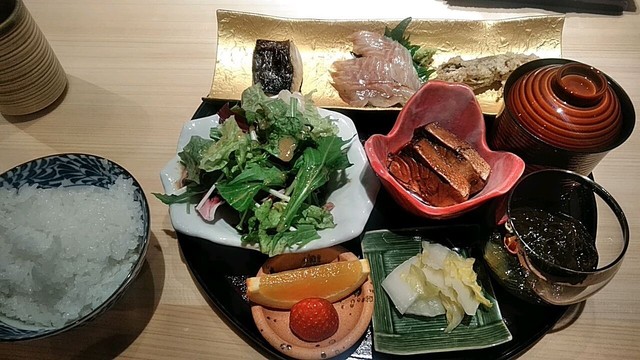 基本的に、メイン以外に刺身、茶碗蒸し(違う場合もある)、小鉢、漬け物、貝汁が付きます。