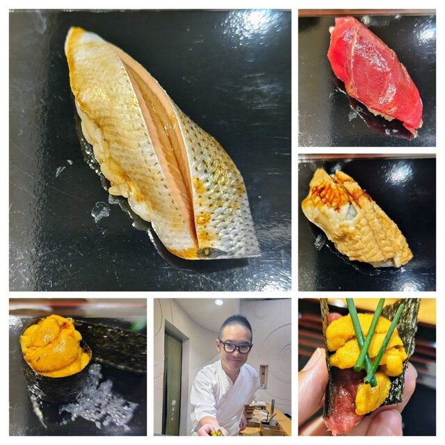 鯛、こはだ、煮蛤、穴子、河豚白子、ウニ
