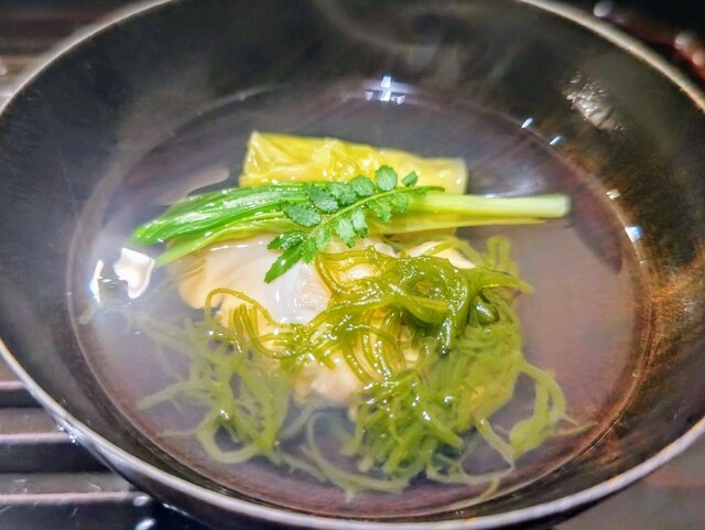 ゆっくり味わって飲んでいたので、一品一日本酒という変な飲み方にはならず、次の「椀物」「向付」「お凌ぎ」まで持ちました。