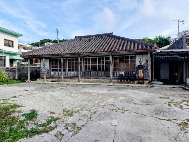 ラーメン屋「チャイナタウン」から饒波部落に向けて路地(歩道なし)をクネクネ走って道なりに進むと、左手に大きな敷地の古民家(外見はかなり古い)がありました。