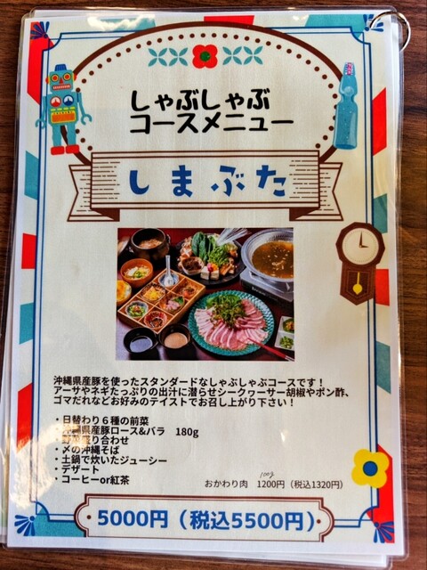 メニューを見ると、沖縄そば以外に、昼でもしゃぶしゃぶが注文可能のようです。