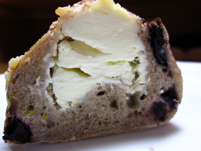 ハードタイプの生地にクリームチーズとブルーベリーを練り込んだパンです。