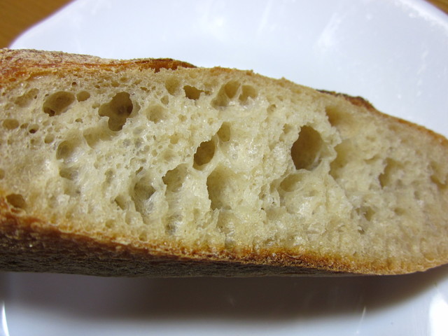 クラストは然程固く無く、クラムは素晴らしいスダチ(気泡)具合。
