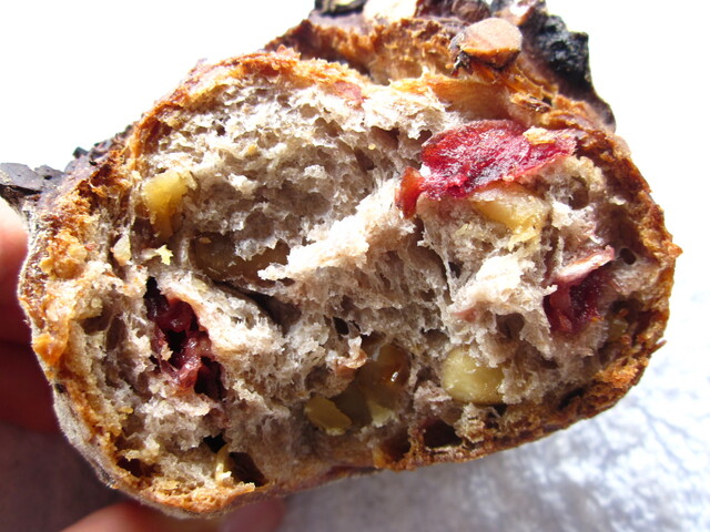 クランベリー・レーズン・カシューナッツ・胡桃を入れた天然酵母のカンパーニュです。