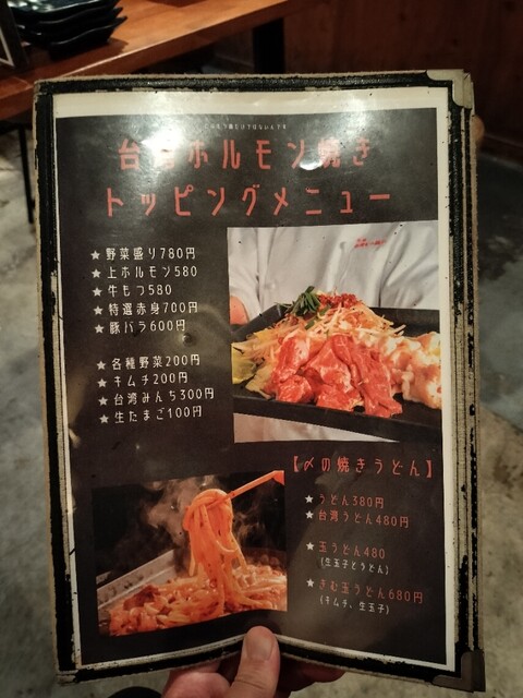 大きく脂を蓄えたホルモン入りのスープに、台湾ミンチ・キャベツ・ニラ・もやしが付く。