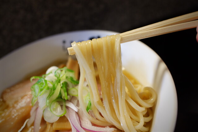 形状から分かるように、この麺を一気に啜るとスープもよく絡み、鼻から抜ける香りがたまらなく好き♪
